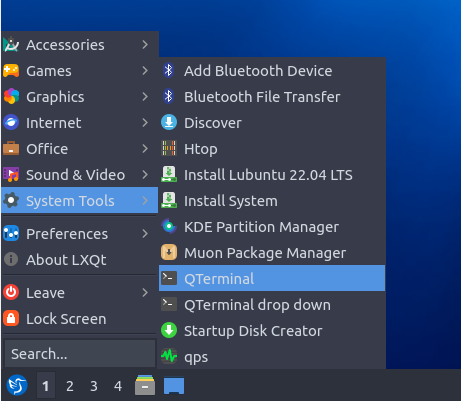 Click on the Start button on your taskbar and go to System Tools > QTerminal. You should be met with a screen like the image on the right.